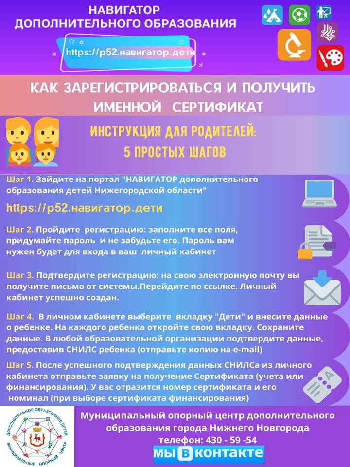 В Нижегородской области работает портал «Навигатор дополнительного образования Нижегородской области» Адрес в интернете: https://p52.навигатор.дети